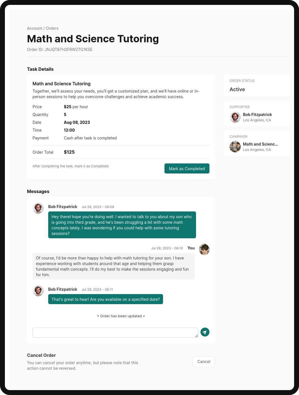 Once your campaign is live, it's time to spread the word about it. Reach out to friends, family, colleagues, and acquaintances. Share your campaign's unique URL on social media platforms, such as Facebook, X (ex-Twitter), and Instagram, and encourage your followers to share it with their networks as well. Additionally, supporters who find you on Taskwer can also contribute to your campaign.